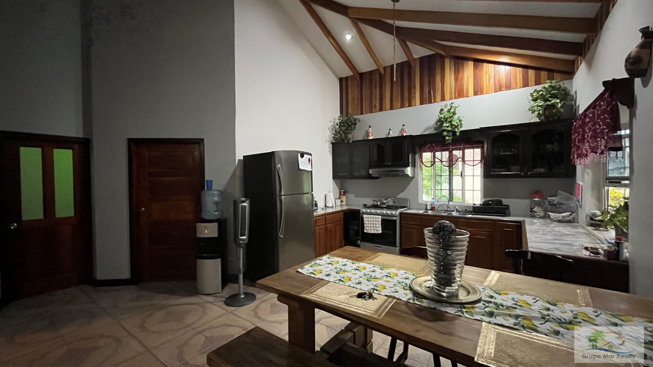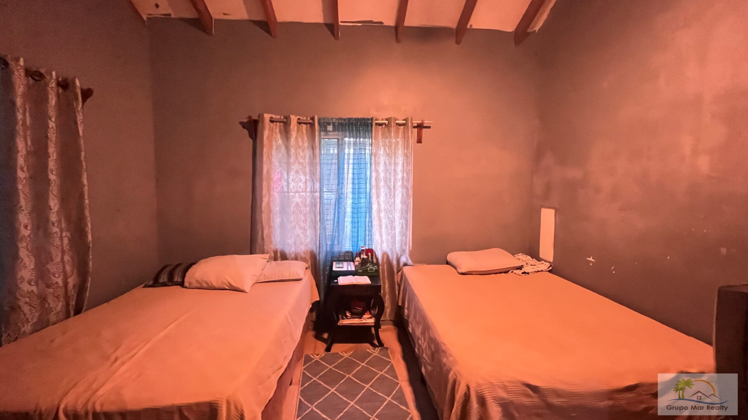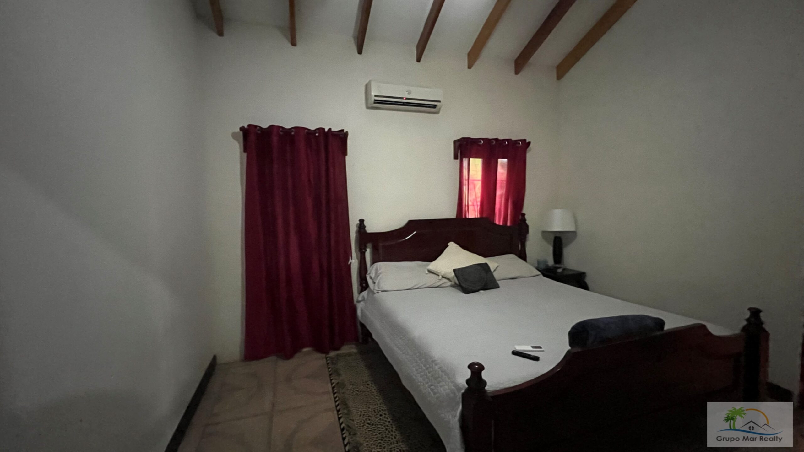 This home is spacious and comfortable with tiled floors throughout, and high ceilings. It features 1 guest bedroom with a shared bathroom and a master bedroom with an ensuite bathroom. There is an open-concept kitchen/dining area with living space. There is a large covered patio which is an excellent place to entertain guests for afternoon siestas.